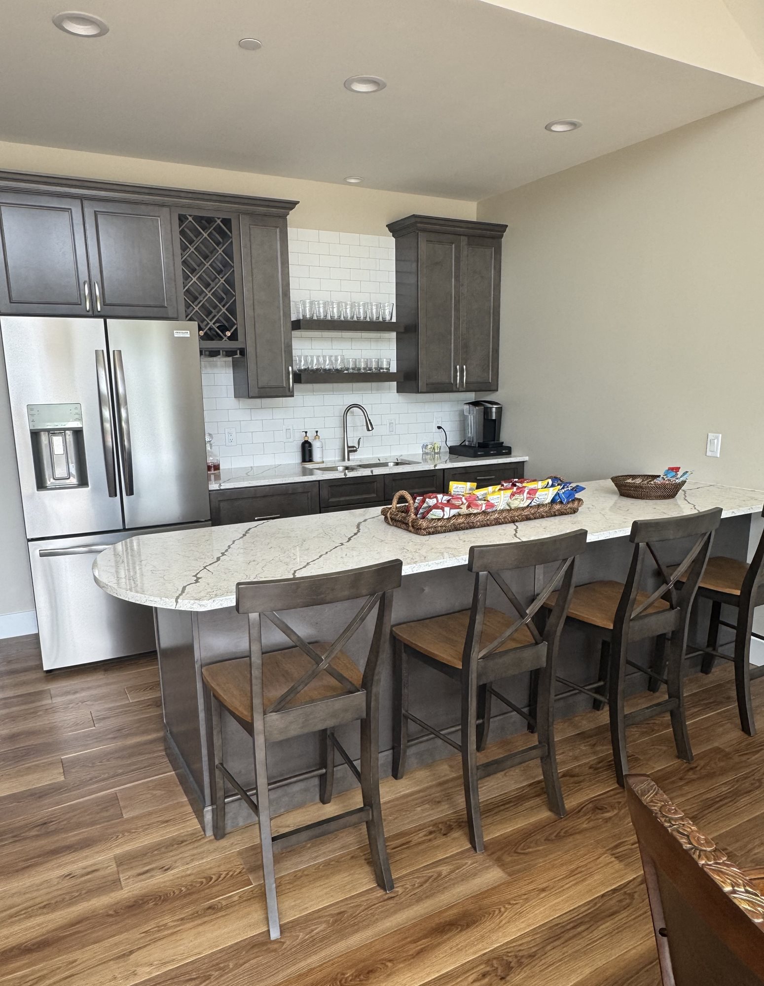 - Wet bar and lounge area for light entertaining